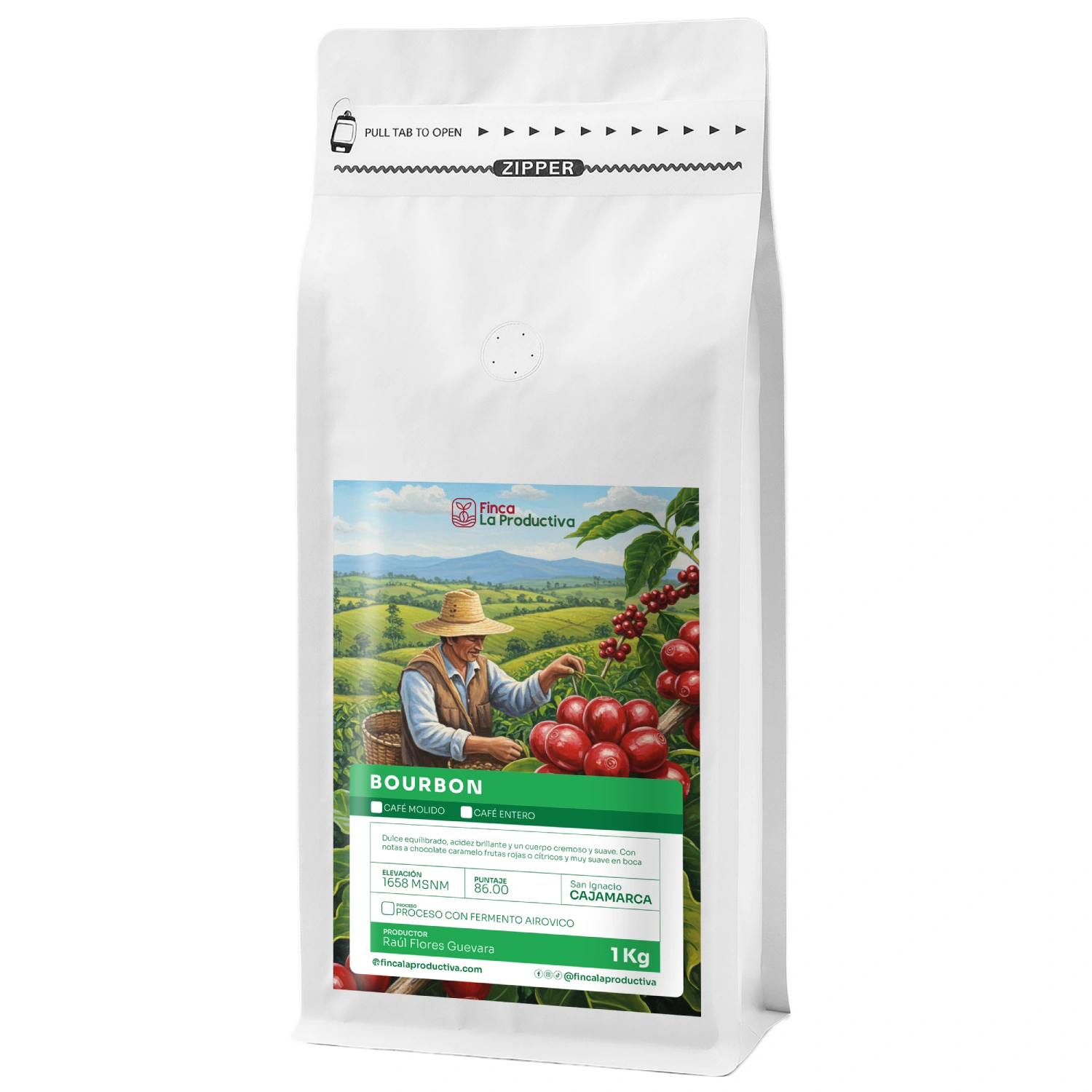 Café Bourbon de especialidad, cultivado a 1658 msnm en San Ignacio – Cajamarca 🌄. Dulce, balanceado y con cuerpo cremoso. Notas a chocolate oscuro, frutas rojas y acidez cítrica brillante. Café artesanal peruano con fermento aeróbico, perfecto para los amantes del café de altura. 🇵🇪✨